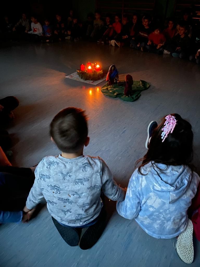 An allen Freitagen im Advent versammelten sich die Kinder der GS Söllhuben in der Turnhalle zum gemeinsamen Adventsstündchen. Ein herzlicher Dank gilt Herrn Gaiser, der die Kinder auf den Weg nach Weihnachten mit biblischen Geschichten, verdeutlicht durch die wunderschönen Eglifiguren, mitnahm. Die Kinder waren sehr aufmerksam und umrahmten die Stunden mit schönen Weihnachtsliedern. (Angelika Aschbacher)